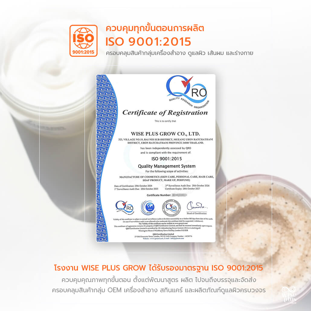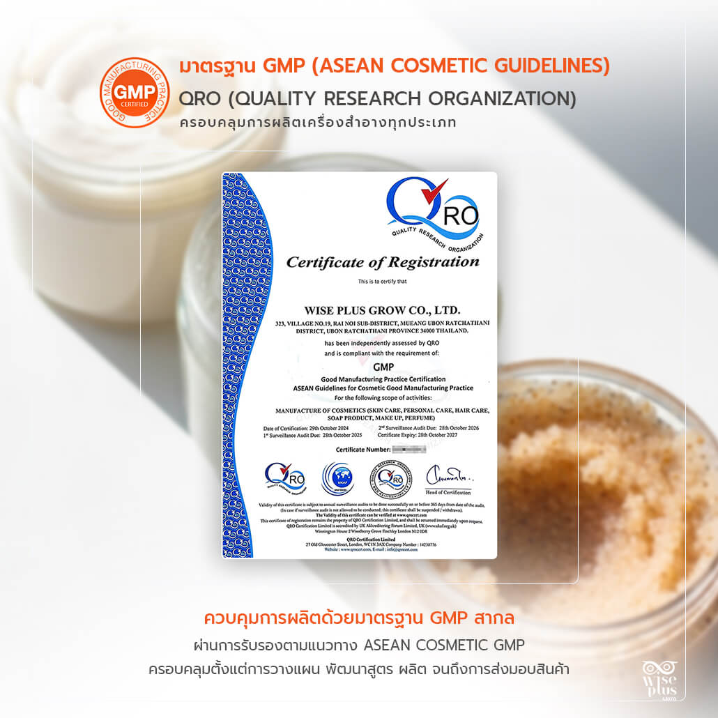 หากคุณกำลังมองหาโรงงานรับผลิตสครับ OEM ที่ให้คำปรึกษาครบทุกขั้นตอน ตั้งแต่การพัฒนาสูตร ออกแบบแพ็คเกจ จดทะเบียน อย. ไปจนถึงการผลิตสินค้าคุณภาพมาตรฐานพร้อมจำหน่าย ทีมงาน Wise Plus Grow พร้อมให้บริการอย่างมืออาชีพ
